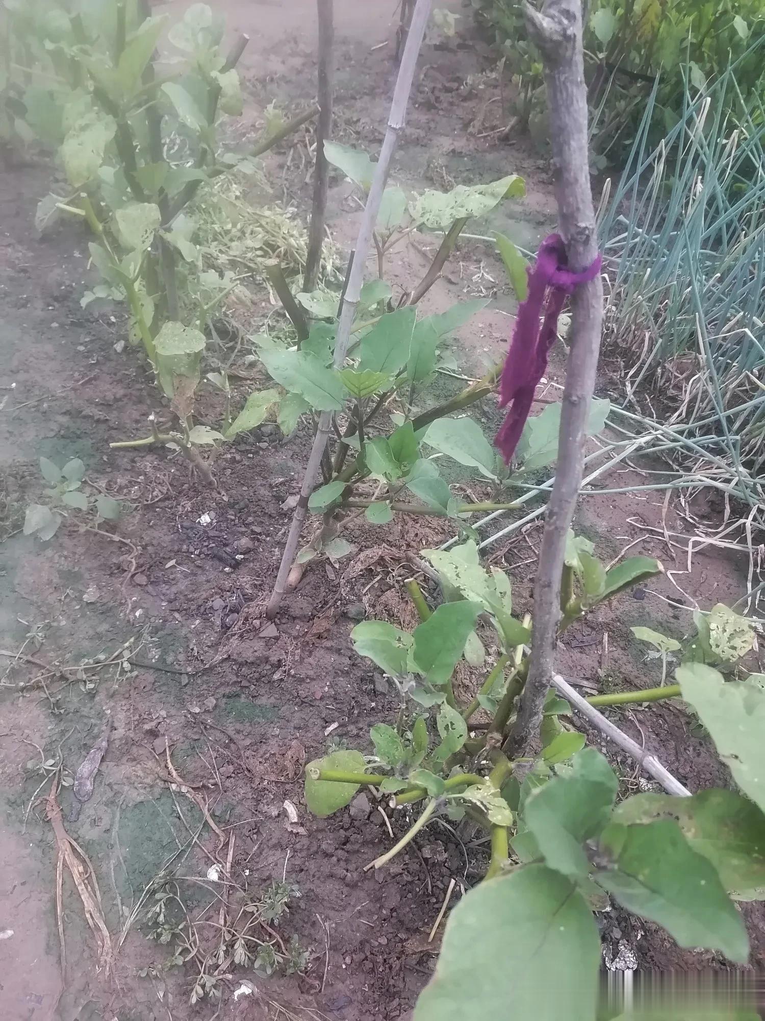 我认为剪老的茄子叶片时,益晚不益过早,因为是没有老的茄子叶片进行很好的光合作用,是根本不能够满足新的茄子枝条对阳光的需求的,新的枝条就生长慢的多,和有老叶片的新的茄子枝条生长就快的多,下图是我刚刚拍照的图片明显的对比。