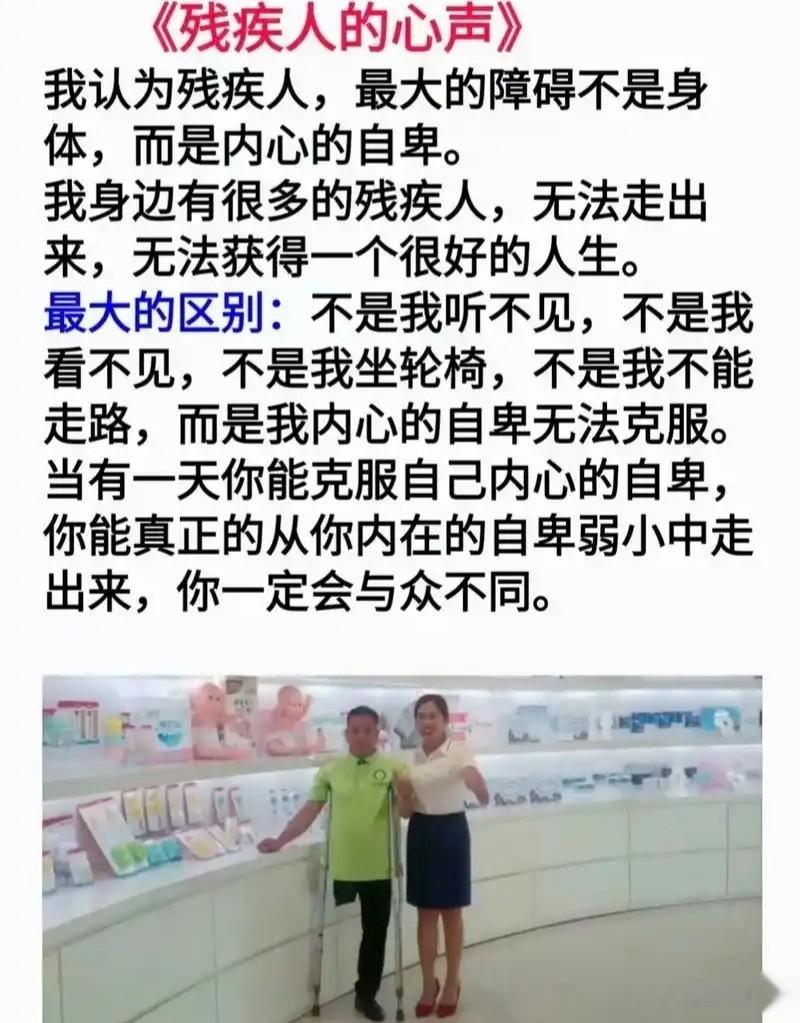 突破自我,是敢于和过去的自己告别,是在质疑声中坚定前行的底气。或许有人会说“你不行”,或许现实会设置重重阻碍,但真正的强者,从不会被他人的评价束缚。就像那些在赛场上挥洒汗水的残疾运动员,他们突破身体的极限,在跑道上、泳池中书写奇迹;就像那些在各行各业发光发热的残疾人工作者,他们突破世俗的偏见,用专业能力赢得尊重。他们深知,突破不是一蹴而就的壮举,而是日复一日的坚持——今天比昨天多一点勇气,明天比今天多一分进步,终会在时光里遇见更好的自己。