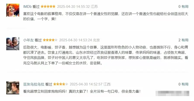 五一档上映的《水饺皇后》集齐了马丽、惠英红、朱亚文等大牌明星,目前位居票房第一,口碑也十分喜人。