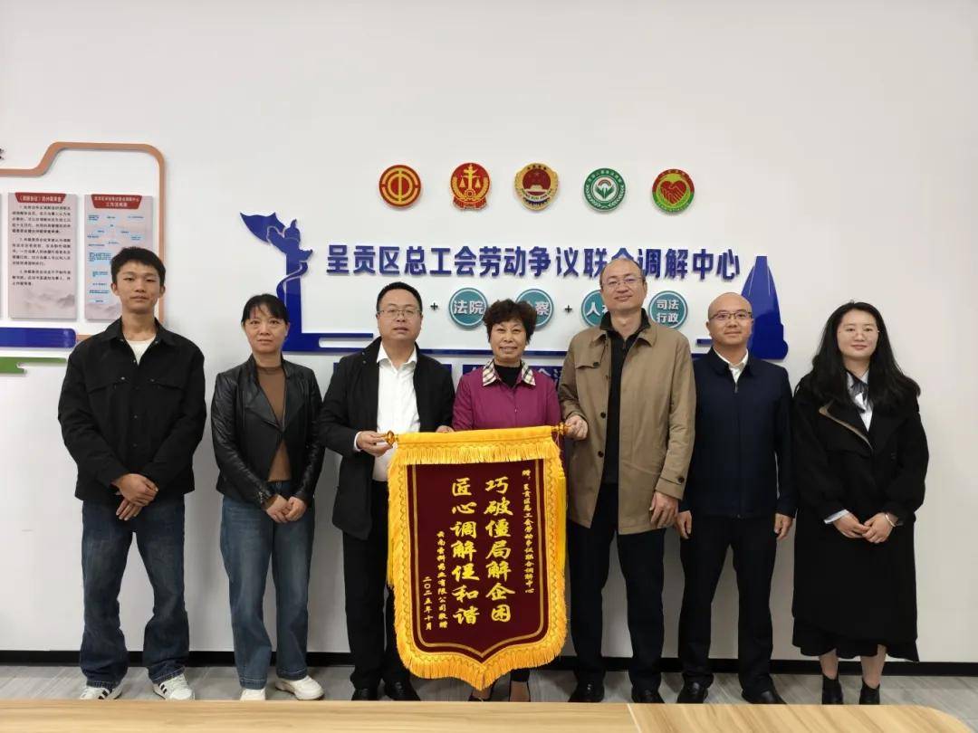 近日,某药业公司将一面书写着“巧破僵局解企困、匠心调解促和谐”的锦旗送到呈贡区总工会劳动争议联合调解中心,衷心感谢工会在近期一起工伤补偿纠纷中提供的专业调解和暖心服务,帮助企业和职工实现了“劳资双赢”。