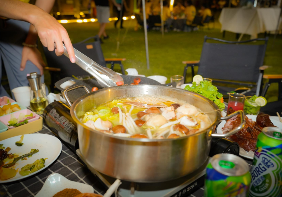 多元定制,适配每一种户外场景。摒弃千篇一律的套餐束缚,品牌打造全品类餐饮矩阵,户外烧烤的烟火升腾、韩式烤肉的滋滋香气、火锅汤锅的暖心暖胃,搭配自助餐的丰俭由人与围炉煮茶的松弛惬意,满足不同人群的口味偏好。更值得称道的是全链条配套服务,从厨具、桌椅、天幕、音响等户外设备租赁,到活动策划、现场搭建、场地布置,再到餐后清扫的一站式收尾,无需客户多费心力,全程专人统筹,让精力聚焦于欢聚本身。