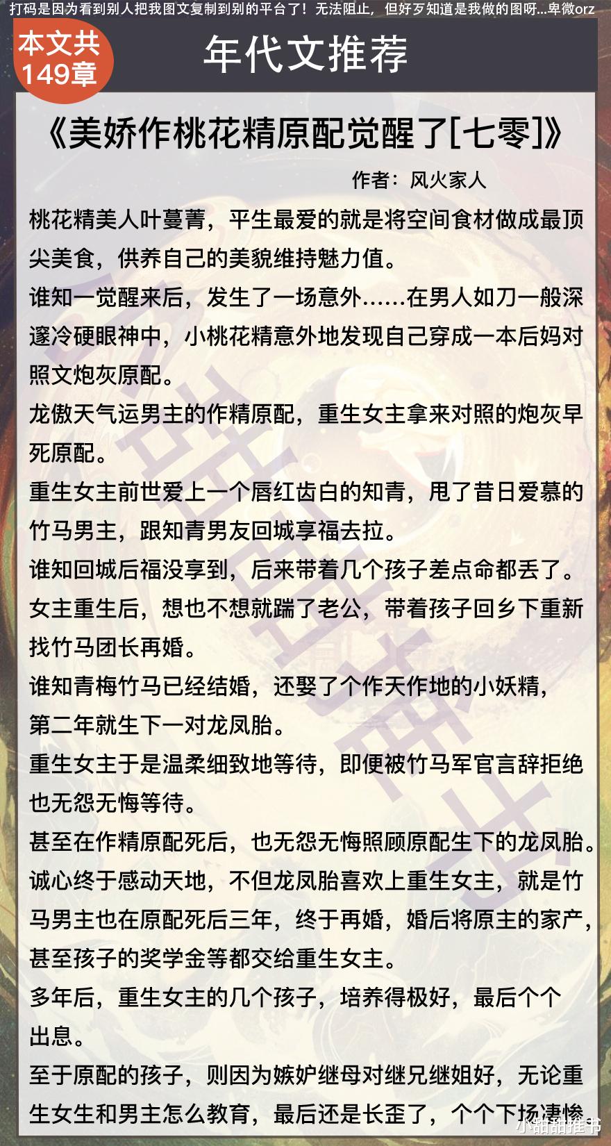 新完结年代文:桃花精娇软作精美人vs一米九清冷禁欲军官《美娇作桃花精原配觉醒了》《虐文女主是我妈[穿书]》