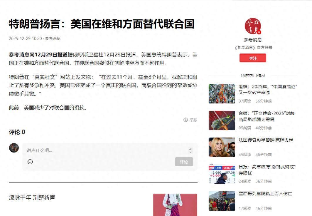 更现实的一层是账本问题。美国长期拖欠联合国会费,金额高达十几亿美元。钱不交,却指责机构没用,这本身就很荒唐。联合国不少人道项目因此停摆,真正受苦的是战乱地区的普通人。但在特朗普的叙事里,这些后果被轻轻抹掉,只剩下“美国吃亏了”。