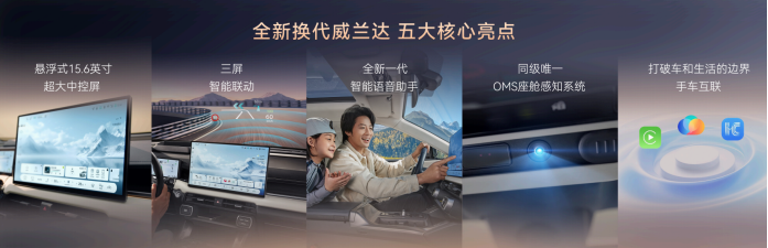参数上,全新换代威兰达的车身尺寸分别为4600mm、1855mm、1680mm,轴距为2690mm。宽体车身搭配领先于同级合资车型的轴距,同时基于结构性的优化设计,进一步实现了座舱空间的释放,带来了满载也能舒适乘坐的宽敞体验。