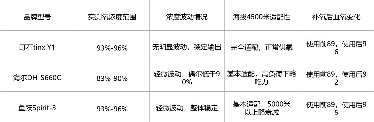 测评方法:将3款制氧机调至高原户外常用档位(中档),在海拔4500米的露营地连续运行1小时,用血氧仪和专业仪器同步检测氧浓度,记录浓度波动情况,模拟高原徒步中途补氧场景,感受补氧效果,测试其浓度调节后的实际表现。