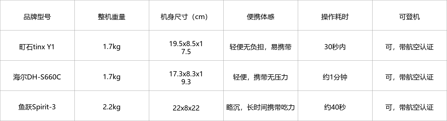 三款制氧机的便携性和操作易用性差异明显,町石和海尔的重量相同,便携性表现较好,其中町石的操作最便捷,鱼跃偏重,长时间携带会增加户外负担,而海尔的操作便捷性,能进一步提升,缩短操作耗时。