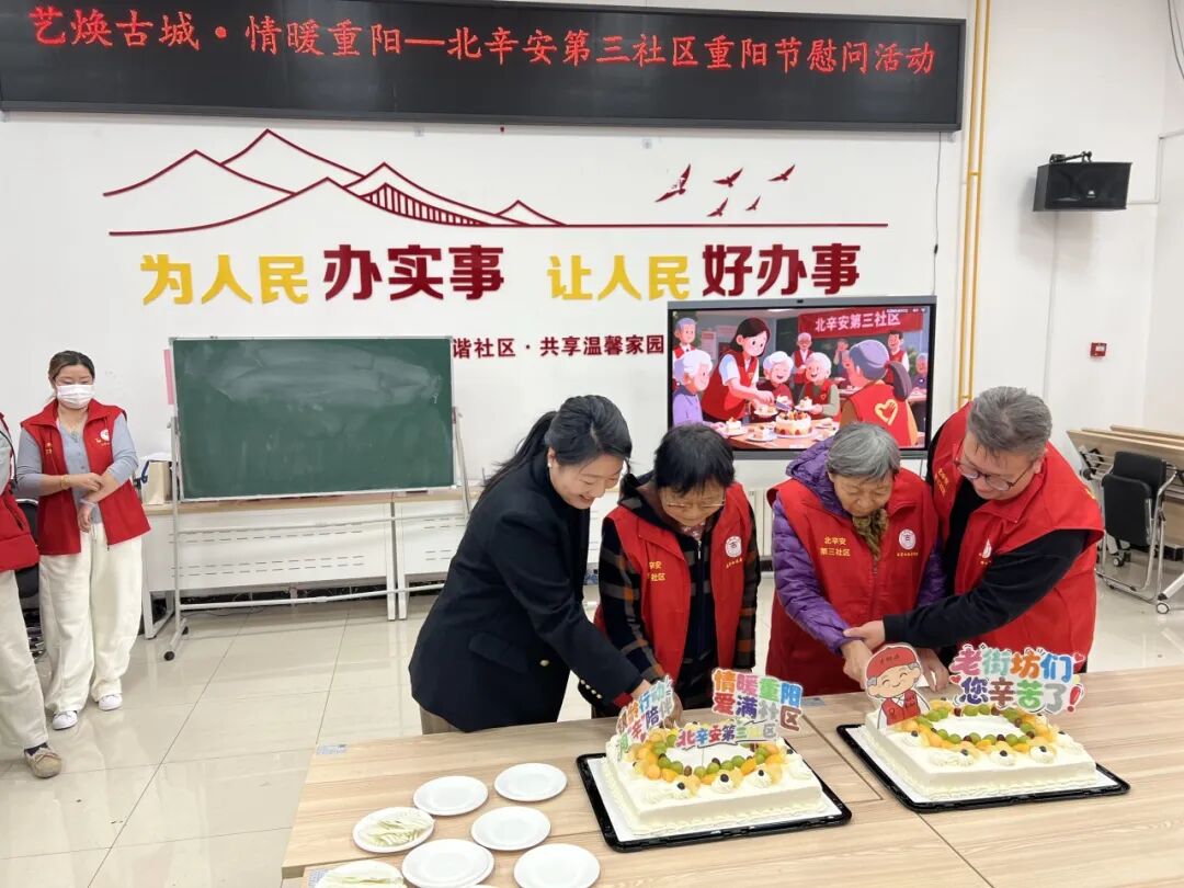 北辛安第三社区的活动室内暖意融融,一场以“情暖重阳,爱满社区”为主题的重阳节活动温馨上演。社区书记向老街坊们表达诚挚敬意,老街坊代表则分享了参与社区志愿服务的点滴故事。活动最后,社区准备了精心定制的重阳节蛋糕,大家围坐一堂,品尝蛋糕,畅叙家常,浓浓的邻里情在活动中流淌。