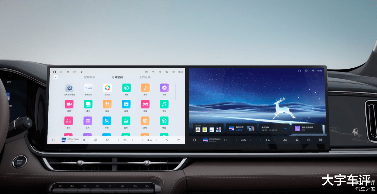 双14.6英寸的屏幕显示效果很细腻,操作逻辑接近平板电脑,上手几乎没有难度。基于8155芯片,整个系统的流畅度有保障,在快速连续操作多个应用时也没有出现卡顿。仪表盘的显示信息清晰易读,且支持多种模式切换。
