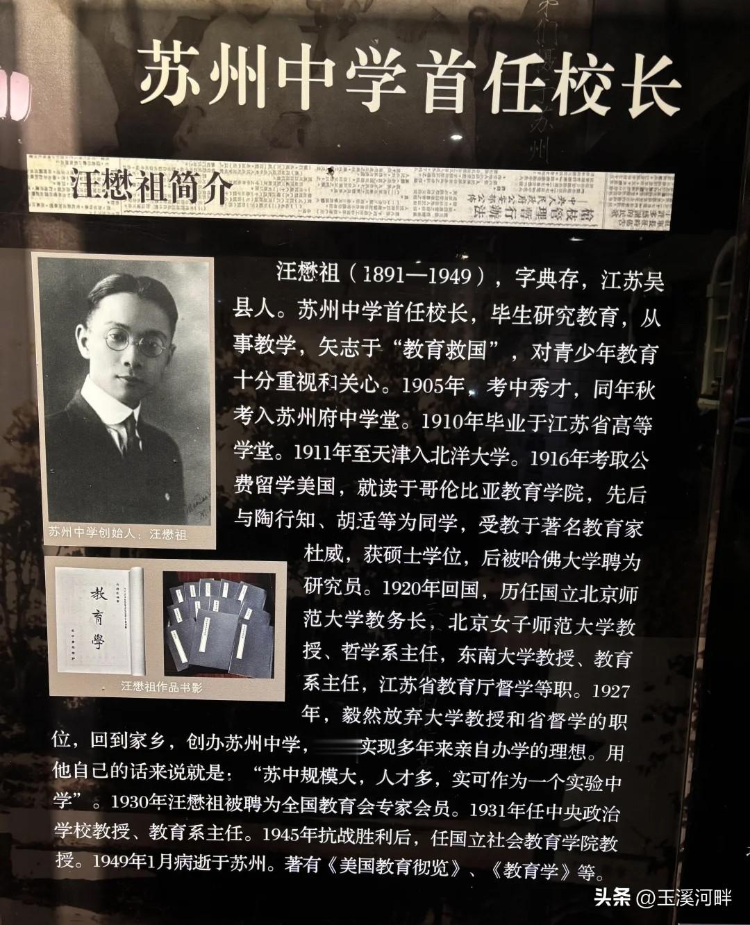 一百年前著名教育家汪懋祖创办了苏州中学,成为首任校长,苏州中学蓬勃发展,诺贝尔奖得主李政道、科学家钱伟长都是苏州中学的校友。现在苏州中学是江苏首批四星级普通高中、首批国家级示范性普通高中,在苏州市熠熠生辉。