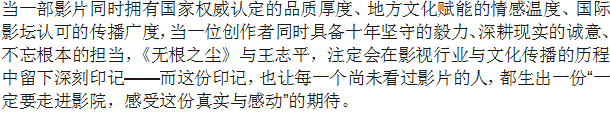 国家电影局评审 王志平执导电影《无根之尘》入选国家精品资助项目