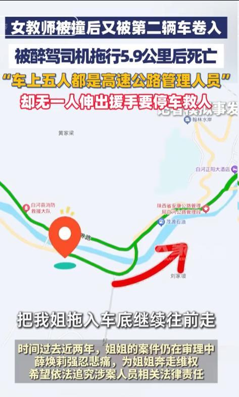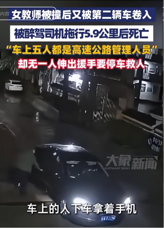 车子拖行5.9公里后,终于因为故障停了下来,肖某和其他4个人下车查看,看到车底的女老师已经没了生命体征,他们也慌了。