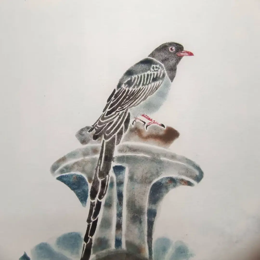 灵感源自于我儿时对于农村生活的记忆,长大后又去二十年前走过的地方去重温,作品运用了中国画的没骨画手法来衬托,用水痕的肌理来表现若隐若现的画面,加上个人的一些看法,比如我该怎么把我的感受有效的传达给读者?画中的鸟就好比我自己,画鸟也是在画己,看画中的世界,给人一种时而清晰,时而模糊的若隐若现的意境,美好的画面仿佛就在刚刚,回忆起依旧让人感到快乐,不禁让人思考生命的意义。