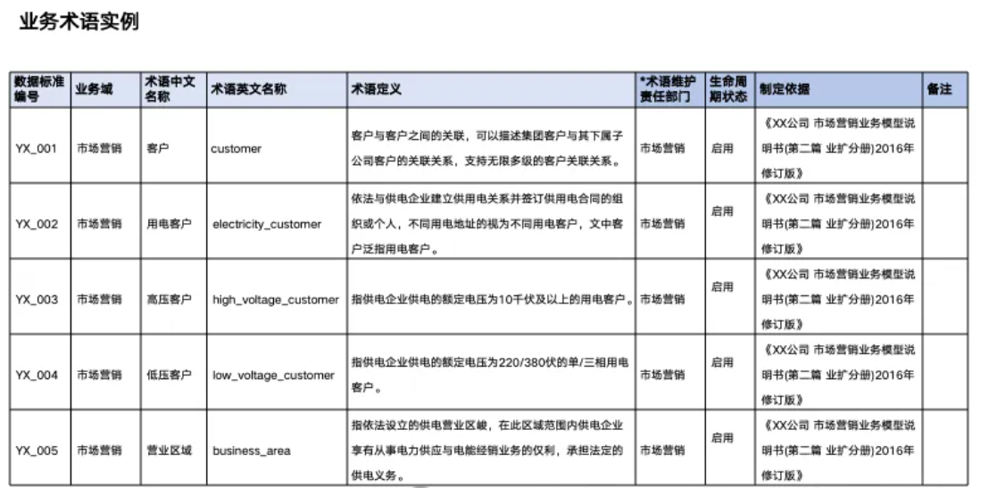 它解决的是业务层面的统一理解问题。什么叫客户,什么叫有效用户,什么叫存量产品,什么叫授信额度,这些术语必须有清晰定义、统一命名规则、使用范围和文档说明。没有术语标准,后面很多争论其实都没有基础。