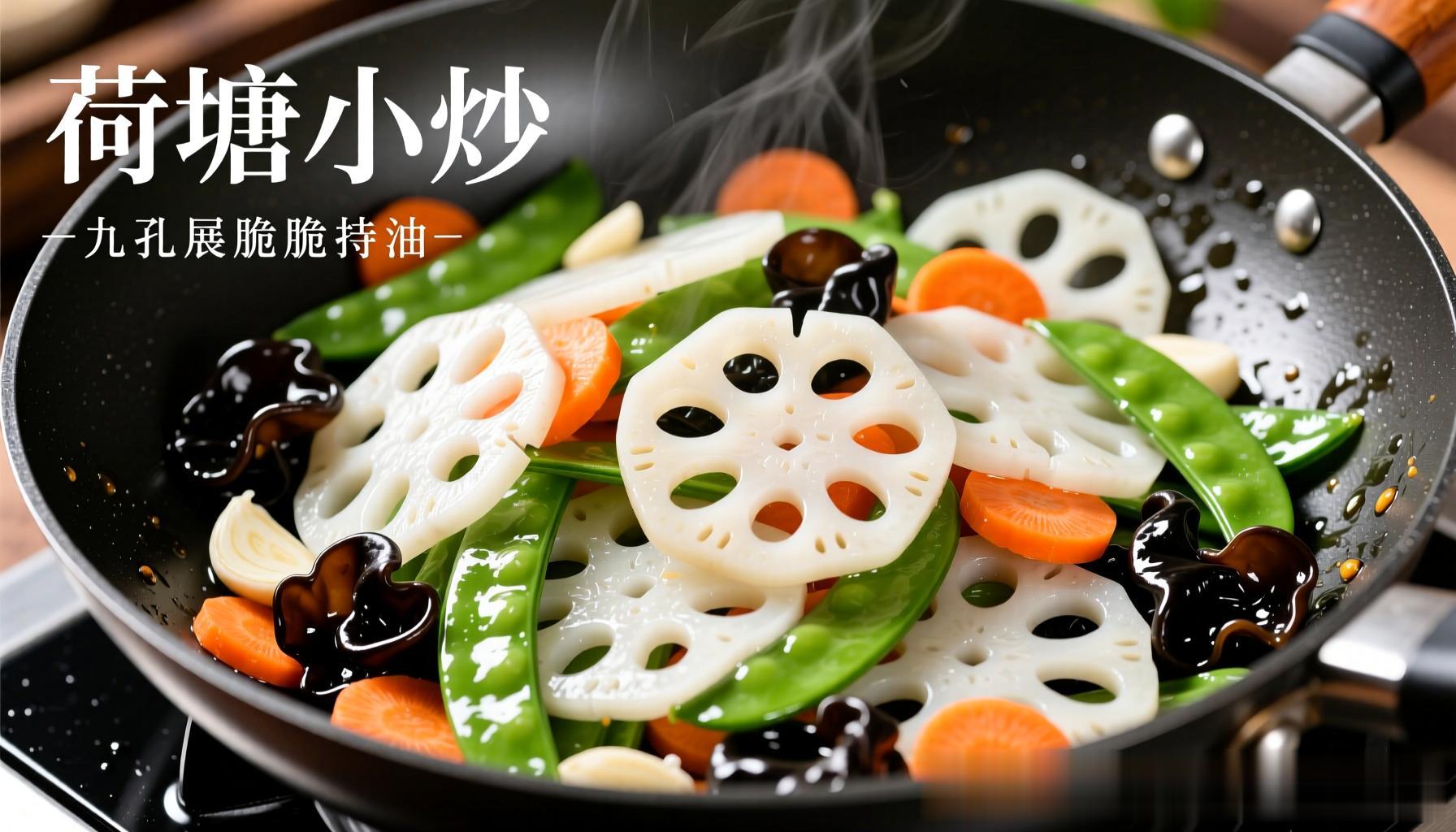 若偏爱清爽口感,“荷塘小炒”则是展现脆藕魅力的绝佳舞台。选取九孔脆藕,切成薄如蝉翼的片状,立即浸入滴有白醋的清水中,以防氧化变黑并保持脆度。配菜可选用鲜嫩的荷兰豆、黑木耳及胡萝卜片,色彩斑斓,营养互补。起锅烧油,爆香蒜片,先下入胡萝卜与木耳翻炒断生,随即倒入沥干水分的藕片,大火快炒。此时需沿锅边烹入少许料酒与清汤,利用高温蒸汽瞬间锁住藕片的水分与脆感。待藕片呈现半透明状时,加入荷兰豆,调入适量盐与鸡精,迅速翻匀即可出锅。成菜后,藕片洁白如玉,入口咔嚓作响,清脆甘甜,既解腻又刮油,是夏日餐桌上的清凉慰藉。