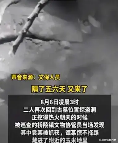 蛰伏五六天后,袁某和谭某以为一切安全,再也按捺不住内心的贪婪。8 月 6 日凌晨 3 点,正是夜色最浓、人最困倦的时候,两人带着工具,再次偷偷潜入陪葬墓区,直奔之前选定的墓葬。这一次,他们不敢有丝毫耽搁,拿起工具就疯狂开挖,电钻钻透土层的刺耳声、铁锹铲土的急促声,在寂静的夜里传出去很远。