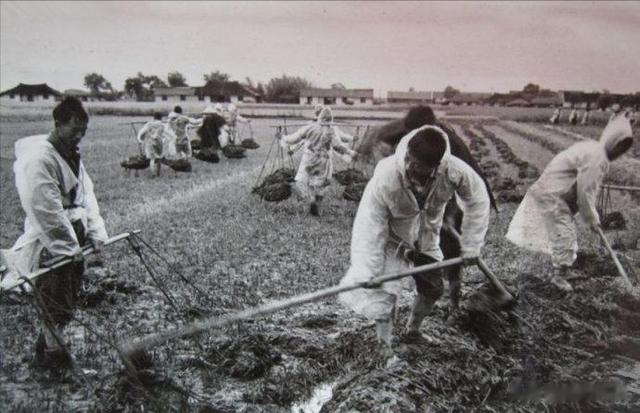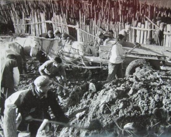 1973年,在金水生产队落户的知识青年虚心向贫下中农学习,在“农业学大寨”群众运动中,积极贡献自己的力量,这是他们和社员一起垫圈积肥,为今年农业丰收做好物质准备。