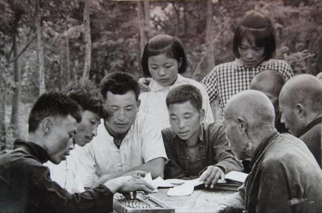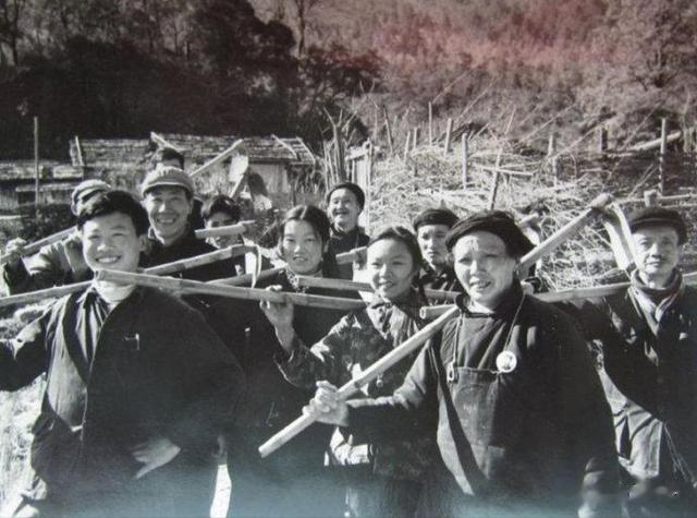 1970年,江西省井冈山公社大井大队革委会委员62岁党员罗尚德,是个老红军,她坚持参加集体生产劳动,热心为社员办事,关心年青一代的成长。这是罗尚德(右二)和社员一起参加劳动。