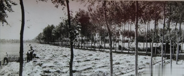 1972年夏收时节,山西林移大队展现一片林茂粮丰兴旺景象,这里田边路旁,树木成林;粮食平均亩产连续三年超千斤。
