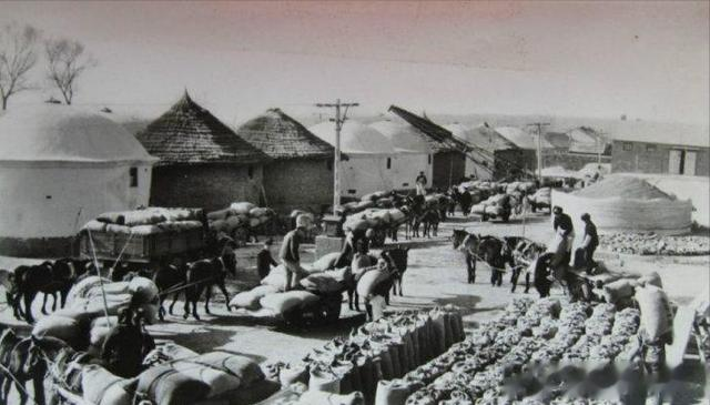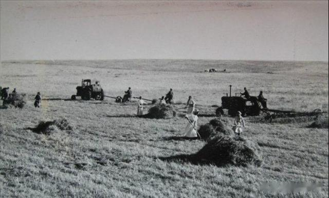 1972年,欣欣向荣的内蒙古草原:西乌珠穆沁旗阿拉坦郭勒公社巴拉根生产队在打饲草,做好牲畜过冬准备。