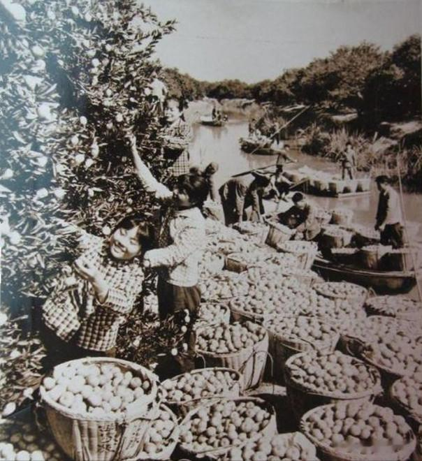 1972年,浙江省黄岩县是全国著名的蜜橘产地,由于各公社加强对生产的领导,切实做好桔园的管理工作,全县今年的蜜桔获得丰收。这是高桥公社胡家灰大队社员收摘蜜桔。