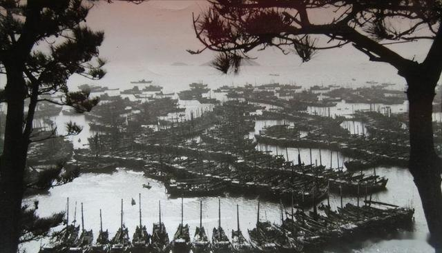 1972年,舟山渔场冬汛带鱼丰收。渔港内渔船云集,广大渔民决心为革命多捕鱼。