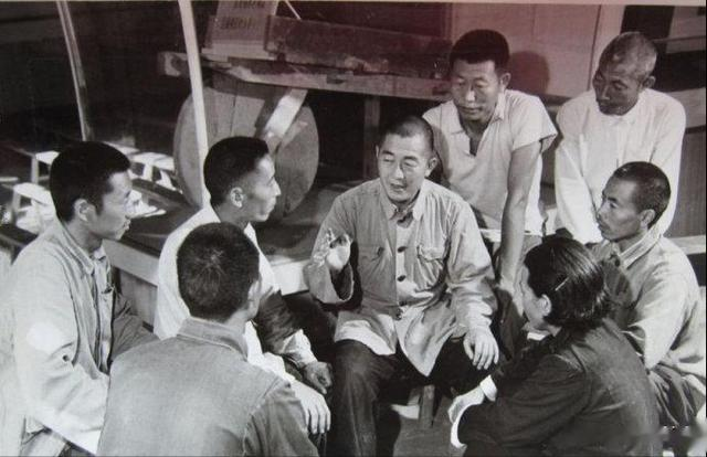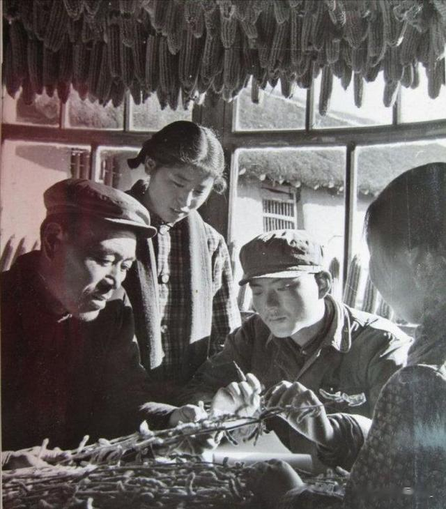 1973年,河南省许昌县桂村公社水道场大队党支部书记岳建智(中)光荣参加了党的十大,回到家乡以后,立即召开支委会,认真传达十大精神,研究贯彻执行的措施。