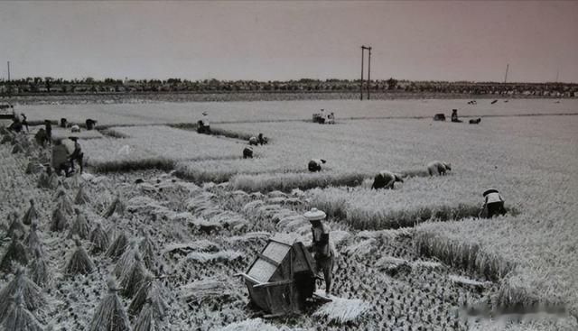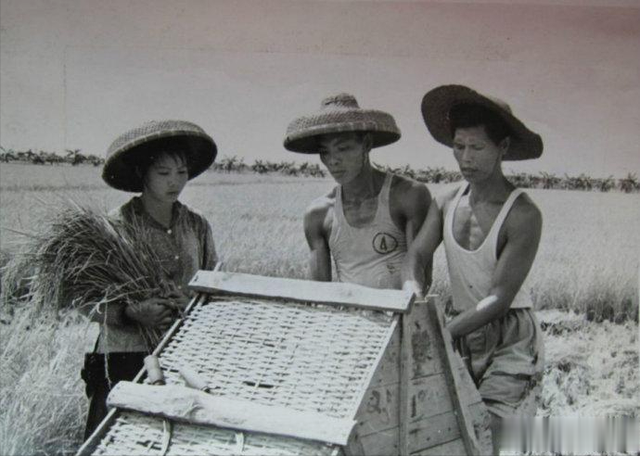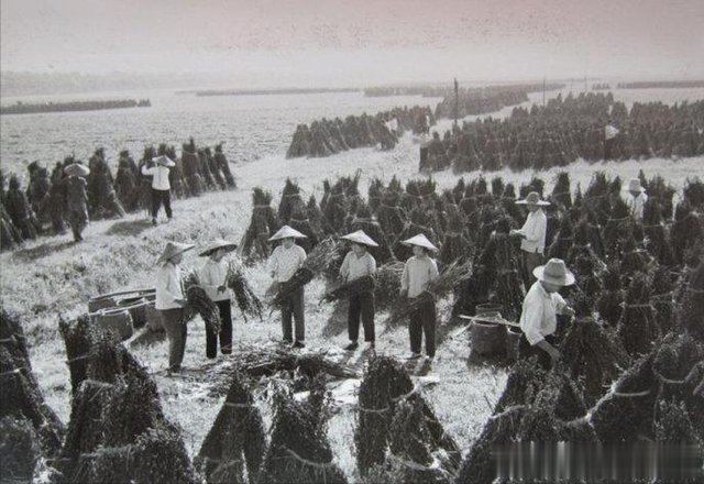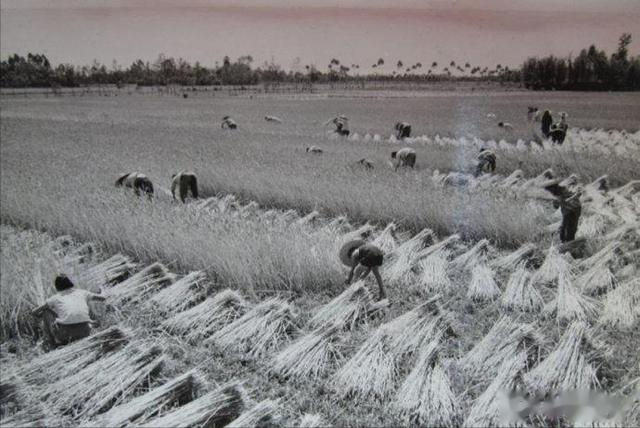 1973年,位于广东省粮产区珠江三角洲的中山县,,广大干部、社员发扬大干苦干的革命精神,战胜了阴雨虫害等自然灾害,夺取了今年早稻好收成。这是郊区公社员峰大队第三生产队社员在收割早稻。