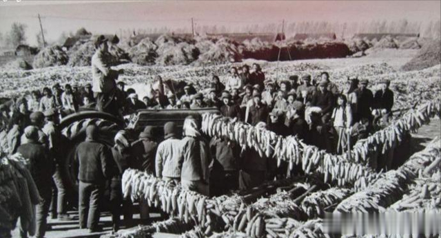 1972年,辽宁省复县广大贫下中农发扬战天斗地的革命精神,在大旱之年夺得较好收成,超额完成国家征购任务。这是三台公社社员在交售余粮和油料。