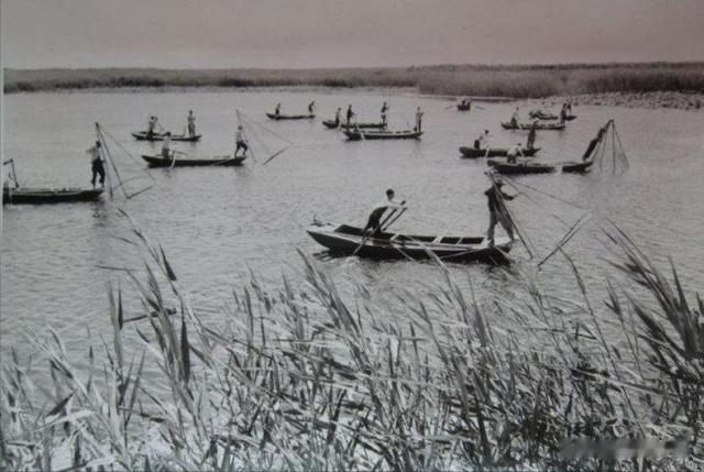 1972年,今日白洋淀:白洋淀是河北省淡水资鱼的重要产地。各社队在发展粮食生产的同时,有计划地建塘养鱼,使渔业生产有了很大发展。这是王家寨公社赵庄子大队的社员在淀中捕鱼。