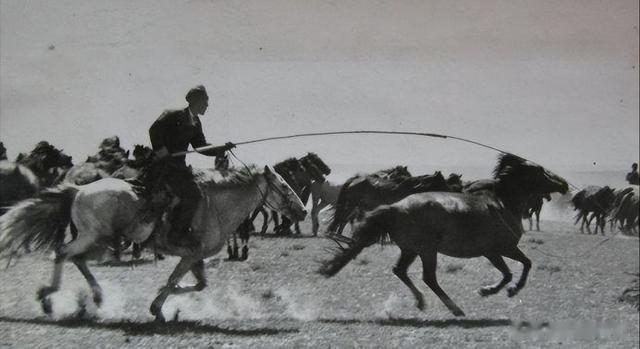 1972年,欣欣向荣的内蒙古草原:四子王旗查干不勒格公社的牧民在那达慕大会上表演“套马”。
