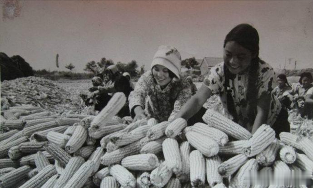 1972年,河南新乡县七里营治黄斗争取得成效获粮棉丰收。由于利用黄河水灌溉农田,连年获得粮食丰收。这是小张庄大队社员喜收玉米。