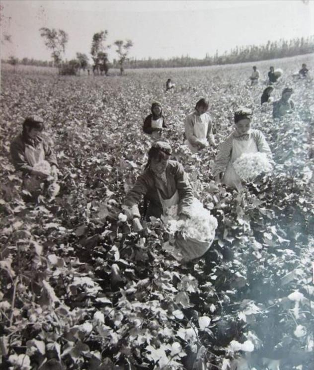 1972年,新疆吐鲁番县五星公社跃进大队认真贯彻“以粮为纲,全面发展”的方针,努力发展棉花生产,在去年棉花亩产皮棉一百三十七斤的基础上,今年七百三十多亩棉花又获得丰收。跃进大队的维吾尔、汉、回各族社员喜摘新棉。