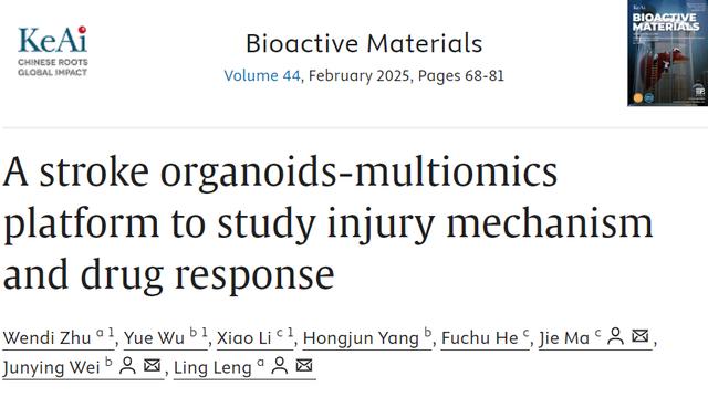 日前,相关论文以《基于脑卒中类器官-多组学平台的损伤机制与药物反应研究》(A stroke organoids-multiomics platform to study injury mechanism and drug response)为题发表在 Bioactive Materials(IF 18)上 [1]。