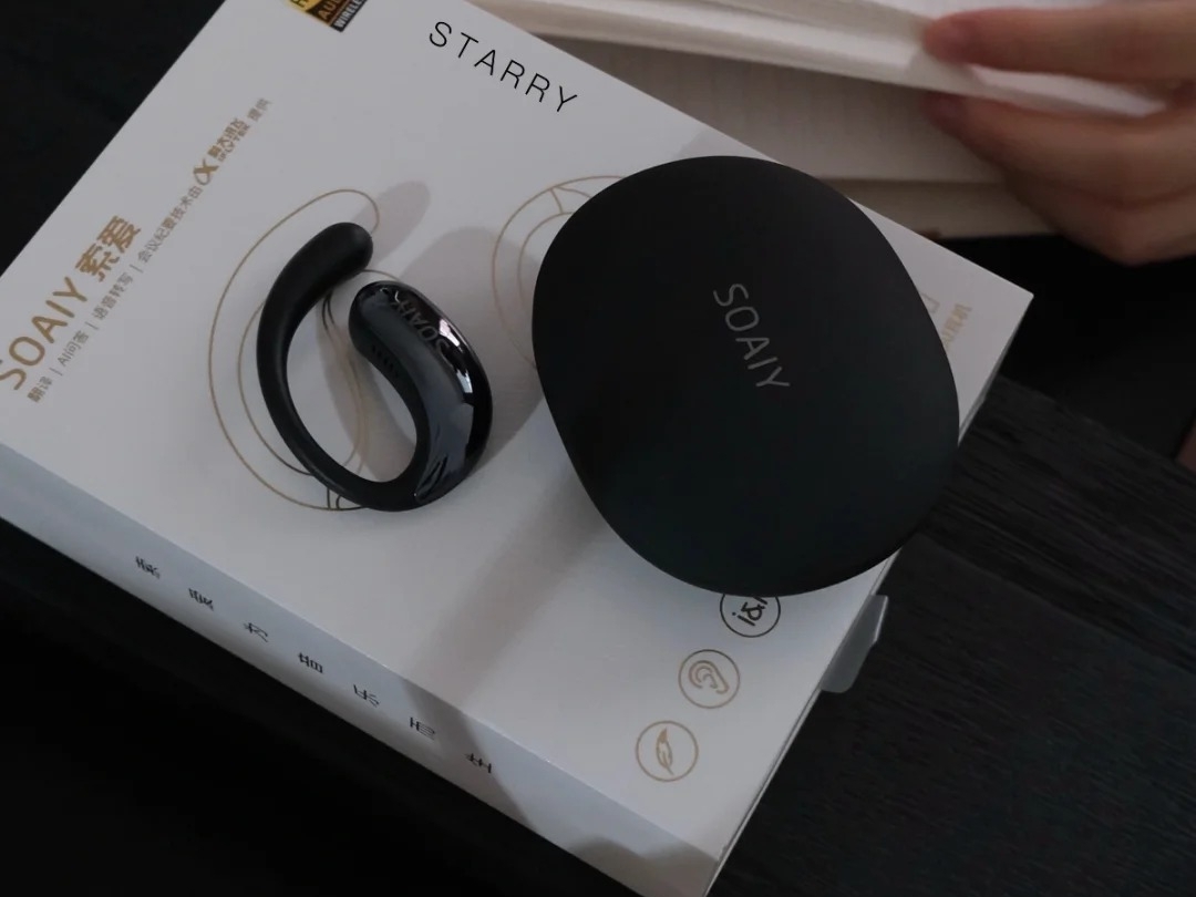 佩戴感也很好,单耳才 6.8g,轻得跟没戴似的,就算戴一下午处理工作,耳朵也不觉得压得慌;它那个26° 的工学弧面设计也特贴心,刚好能贴住耳甲腔的轮廓,戴上去又稳又舒服,不会老往下掉;硅胶材质还软乎乎的,摸着手感特好,不管是上班戴、通勤戴,还是运动的时候戴,都合适。