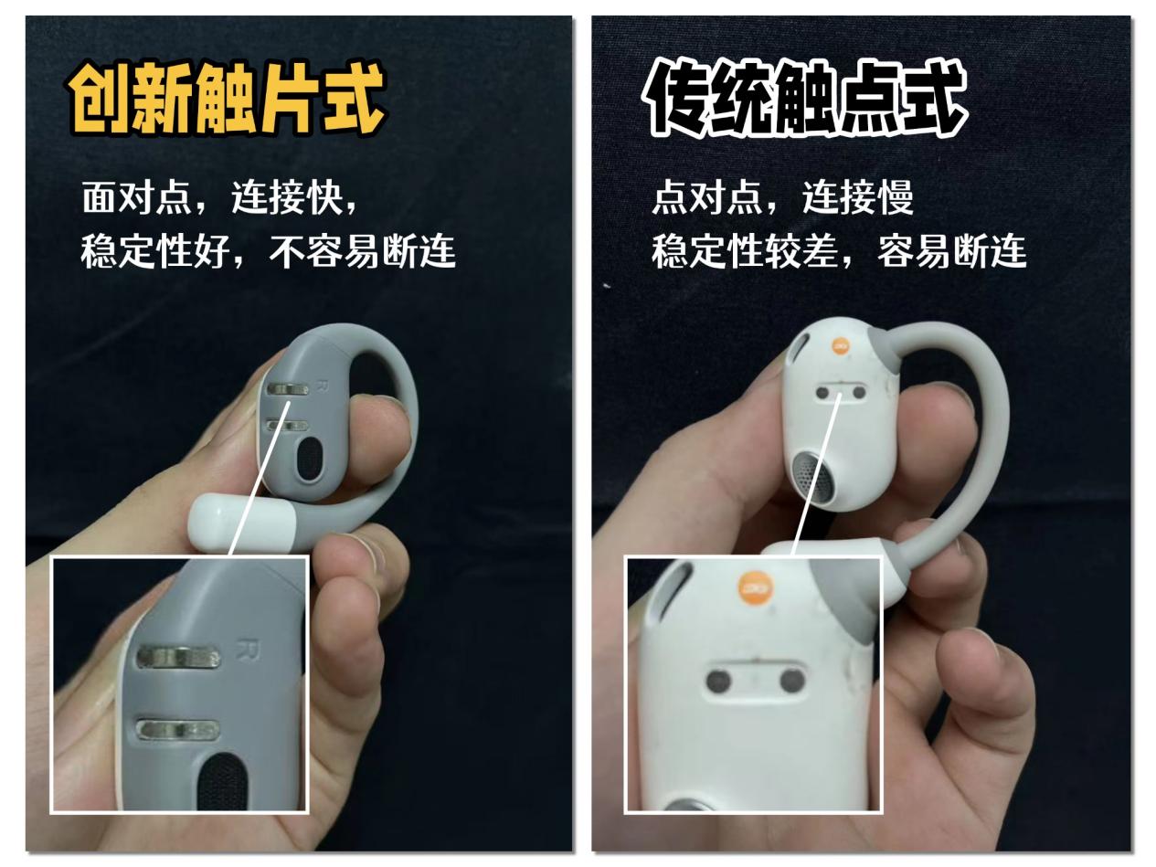 这款耳机采用触片式充电设计,不仅能让充电速度更快,还能大幅减少接触不良的情况;另外,虹觅自主研发的防漏音模式,只需按下三下功能键就能打开,它能有效防止声音外漏,完全可以放心使用。