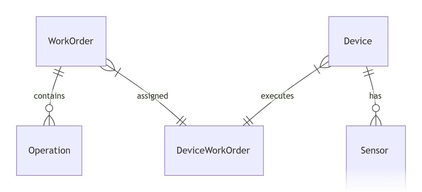 CREATE TABLE DeviceWorkOrder ( mapping_id INT AUTO_INCREMENT PRIMARY KEY, device_id VARCHAR(20), order_id VARCHAR(20), start_time TIMESTAMP, FOREIGN KEY (device_id) REFERENCES Device(device_id), FOREIGN KEY (order_id) REFERENCES WorkOrder(order_id) );