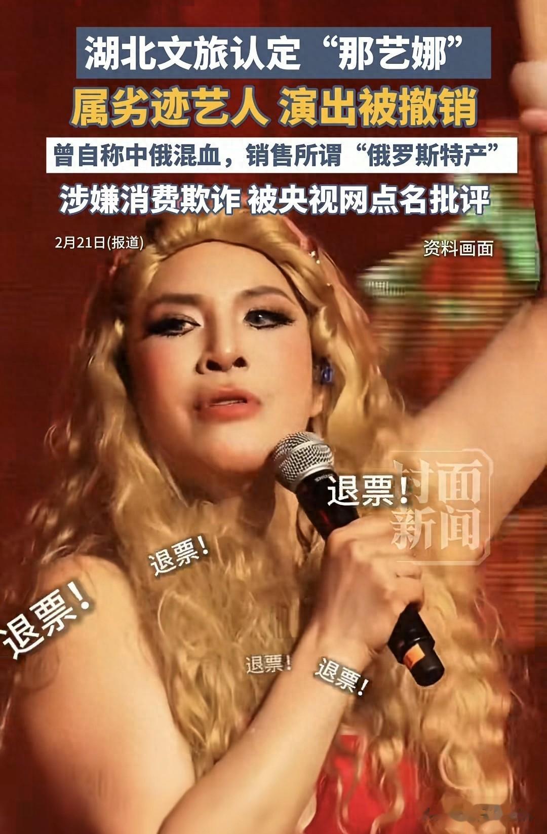 还被央视点名过属于三无艺人,各种的骗粉丝等,后来直接改名了从俄罗斯娜娜变成“那艺娜”。