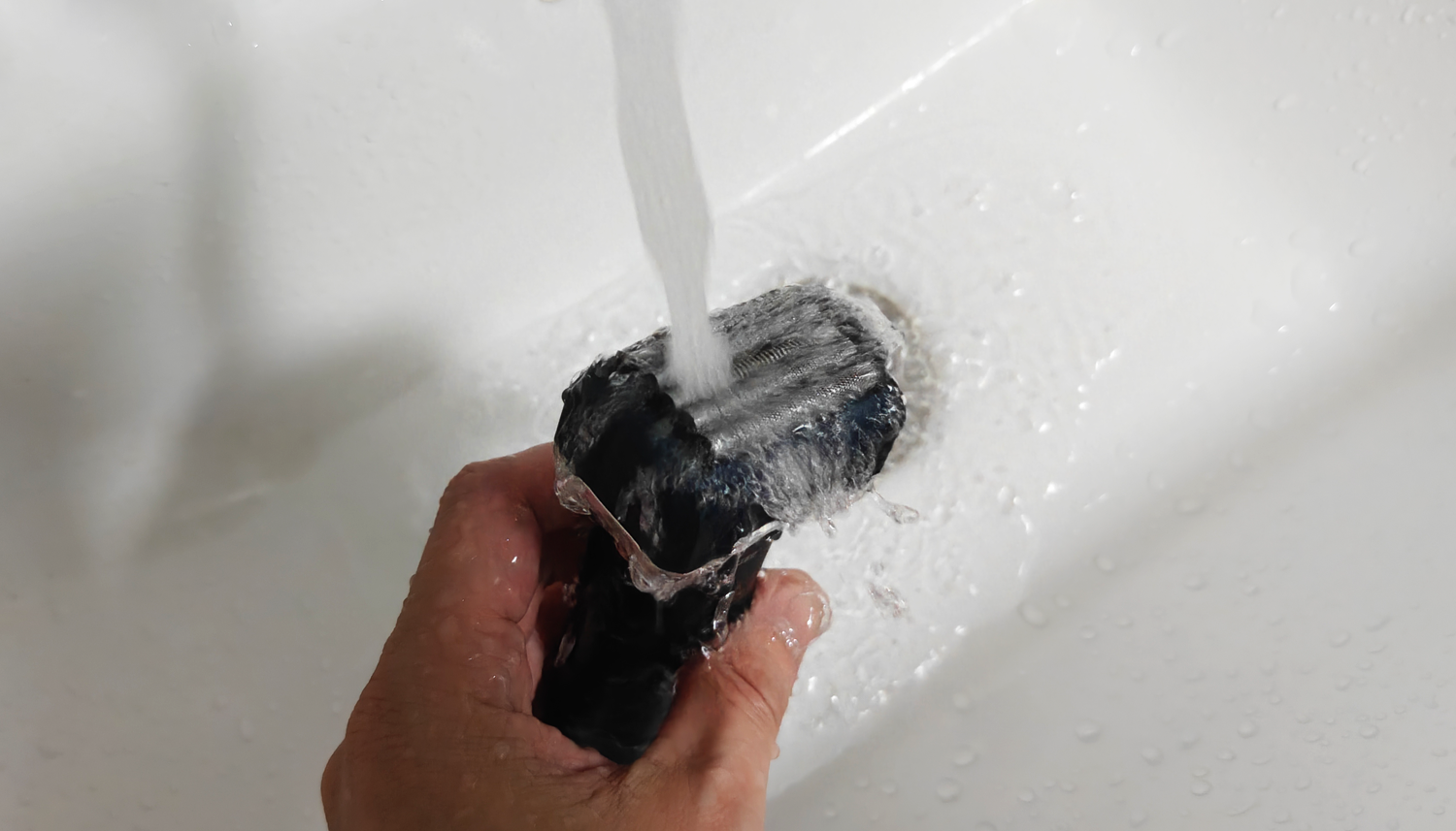 这款剃须刀支持IPX7级防水,后续清理起来特别方便。用完直接拿到水龙头下冲一冲,刀头上的胡茬就基本干净了,不需要额外擦拭。