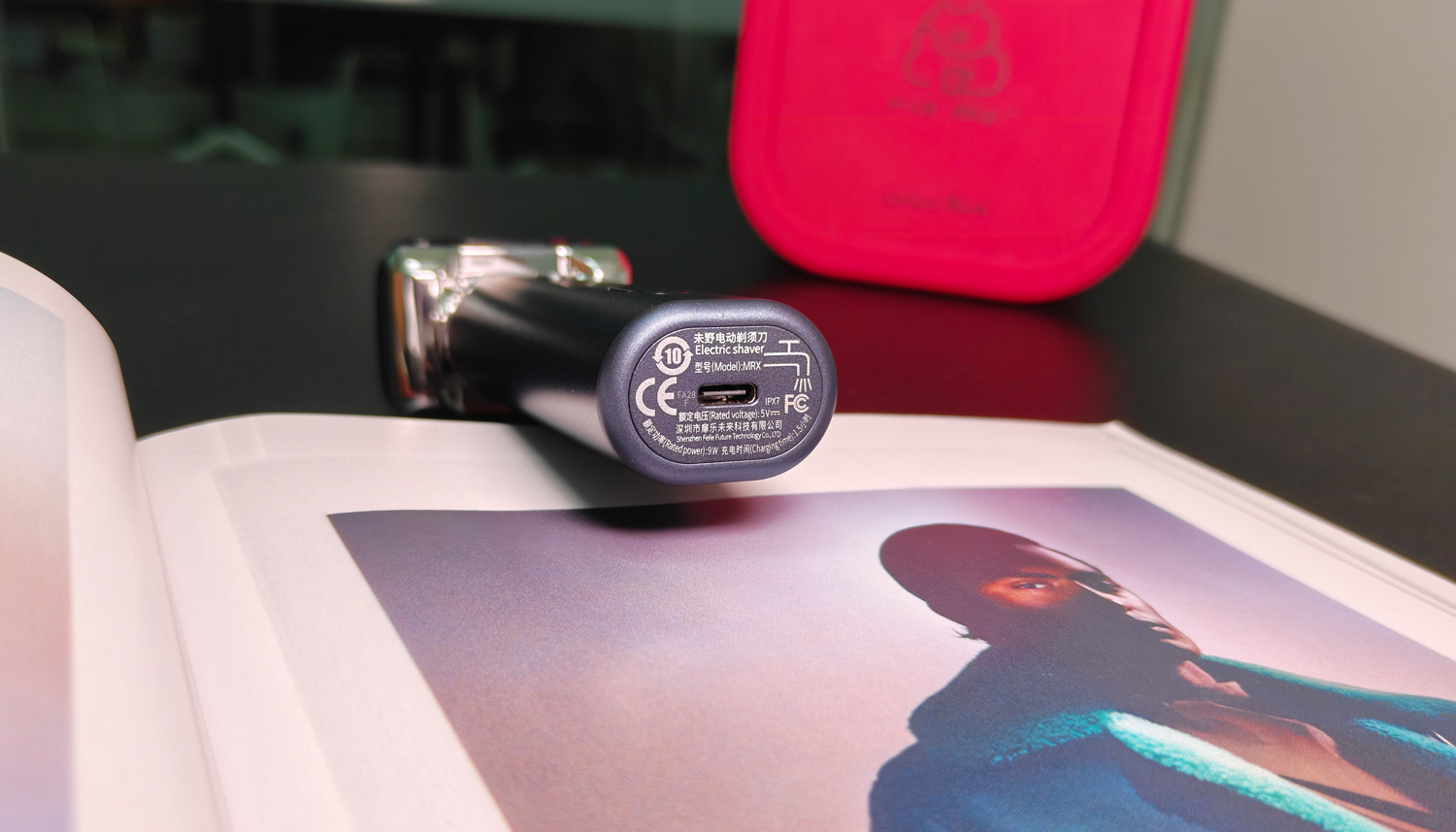 机身底部是平整的切面,可以稳稳地直立放置在桌面上。充电接口是Type-C的,还支持5分钟闪充,有时候急着出门,没电了只要充5分钟就能应急剃一次。而且随便找个手机充电器就能充,不用特意带专用充电器,确实很实用。