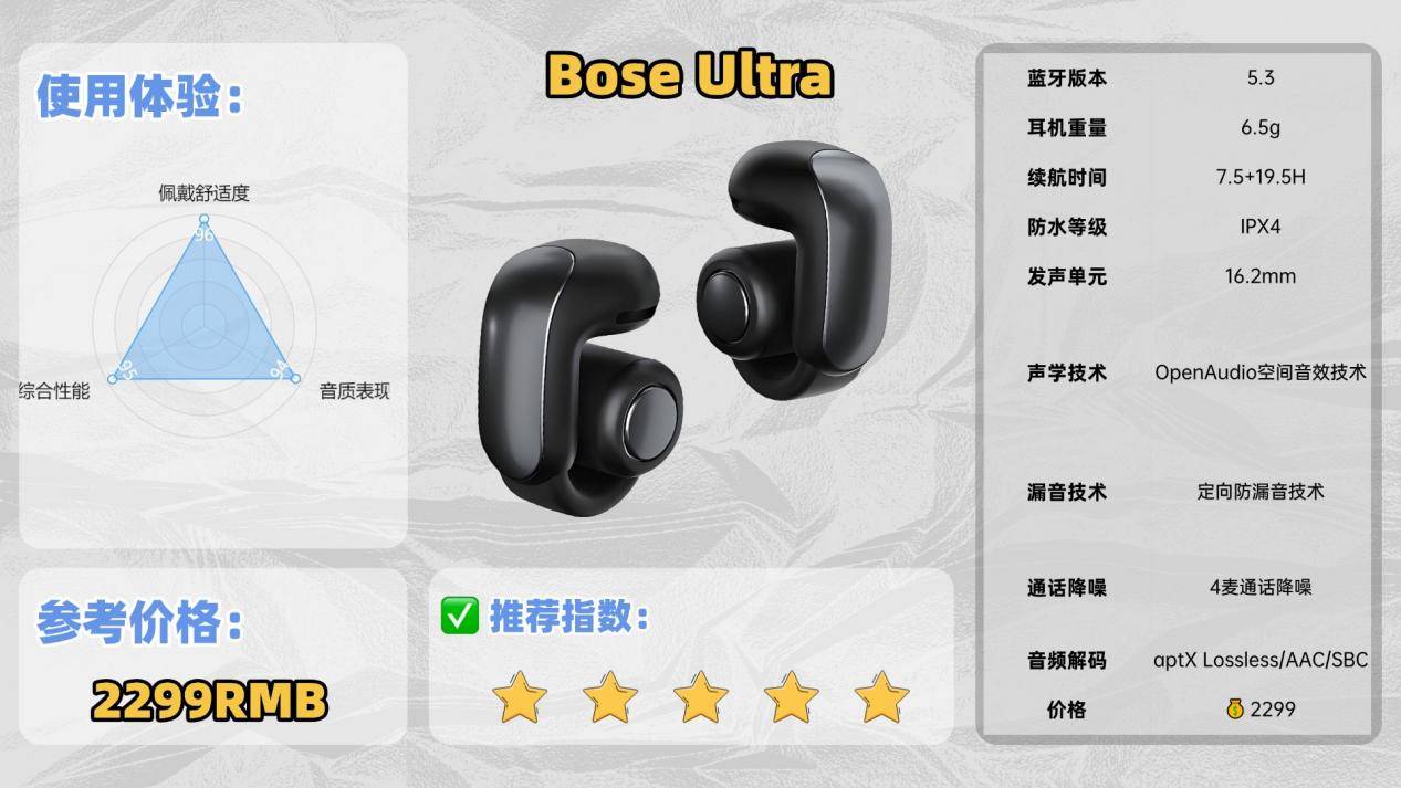 开放式耳机推荐TOP3:Bose Ultra(2299元)
