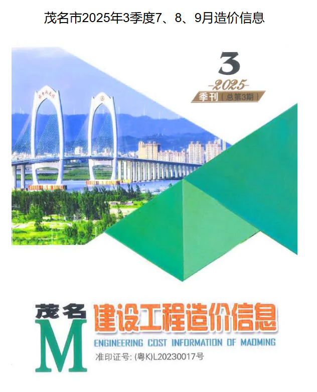 茂名市造价信息为季刊,每季度定期发布一次,通常在每个季度末更新上一季度的价格信息,一般在3、6、9、12月的中下旬会陆续更新当季的期刊内容。以2025年为例,目前已发布至第3期(3季度价格)。要获取最新一期的茂名市造价信息进行下载,这里提供的期刊资料完整、准确,能为工程建设各方提供及时有效的价格参考1。