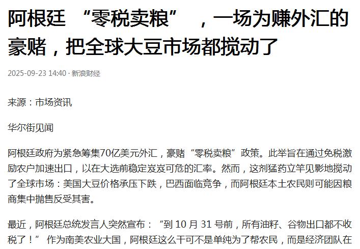 事情的转折点出现在9月22日。阿根廷政府突然宣布,将大豆出口税从33%直接削减到15%,这一下子把自己推上了头条。政策文件编号1256/2025号,外界普遍解读为“对华友好信号”,而中方采购商的反应也没含糊。