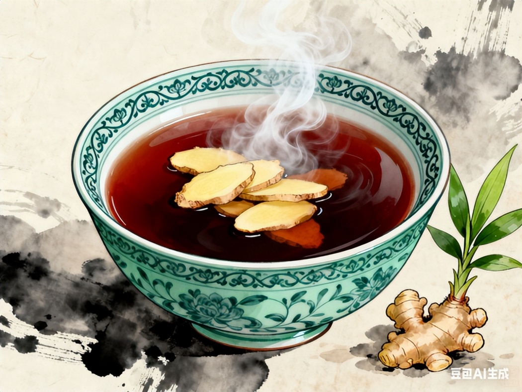食疗方:生姜红糖水(生姜3~5片,红糖适量,煮水喝)。