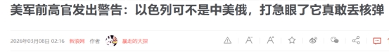 前高官曝核武隐患3月4日,也就是美以伊战争开打之后的第5天,麦格雷戈公开发出了极其严重的警告,指出大家绝对不能用看待中美俄的心态去猜测以色列的核武器使用底线。
