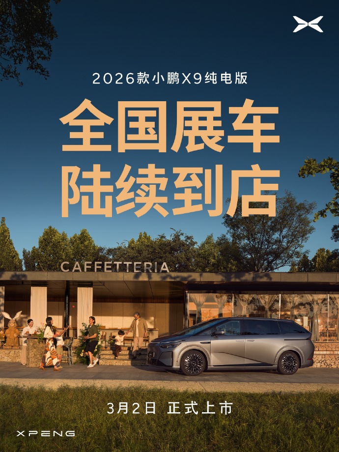 在高端纯电MPV市场,小鹏X9自发布以来便凭借“后轮转向”和“AI智驾”稳居第一梯队。2月28日,小鹏汽车官方正式宣布,2026款小鹏X9纯电版全国展车现已到店。作为年度改款,新车在保持原有空间优势的基础上,针对补能、底盘及静谧性进行了“史诗级”增强。新车将于3月2日正式上市,能否在白热化的MPV市场继续领跑?让我们先看核心“杀手锏”。