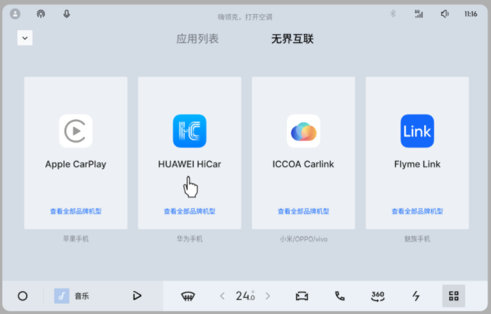 LYNK Flyme Auto 2.0.0版本的OTA更新,首先在手车互联功能上实现了重大突破。面对以往不同品牌手机与车机互联时的种种不便,领克Z20此次全面升级,支持CarPlay、HiCar、CarLink等主流互联方案,覆盖了苹果、华为、小米、OPPO、vivo等主流手机品牌。这一改进彻底消除了设备间的互联障碍,使得导航、音乐、通讯等功能在手机与车机间能够无缝切换,大大提高了出行效率,让用户在驾驶过程中能够更加专注于路况,享受流畅的智能出行体验。
