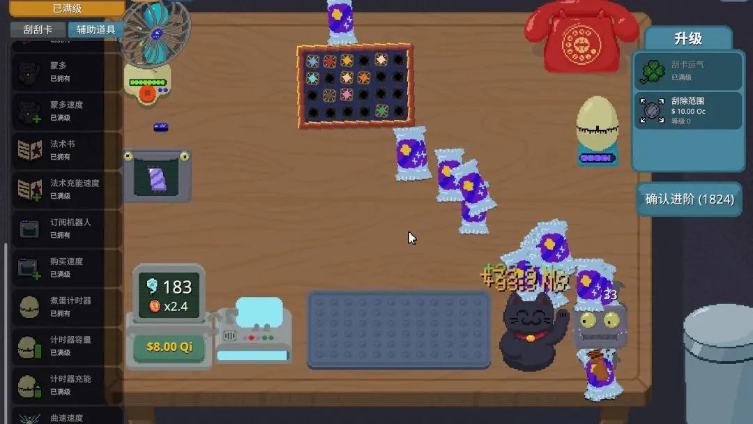 相对应的,游戏还会解锁更多辅助道具,以及装饰和成就,基础能力的升级也会逐级放开。这时候,真·全自动刮刮乐也就不难实现了。而且到这一步,游戏的乐趣也逐步往挂机游戏的方向倾斜。