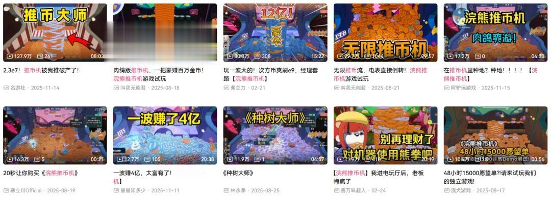 同样在去年下旬因为Demo出名的还有《浣熊推币机》,它是走精包装+融合肉鸽路线,把推币机玩法赚代币的爽感放大,搭配萌系视觉效果,新鲜感和数值刺激都非常到位。
