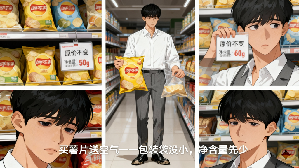 我问问各位,在你们的生活里,有没有碰到过这种价格没变化、东西变少的糟心事。比如说你经常买的那一款零食,是不是觉得越来越不耐吃了。