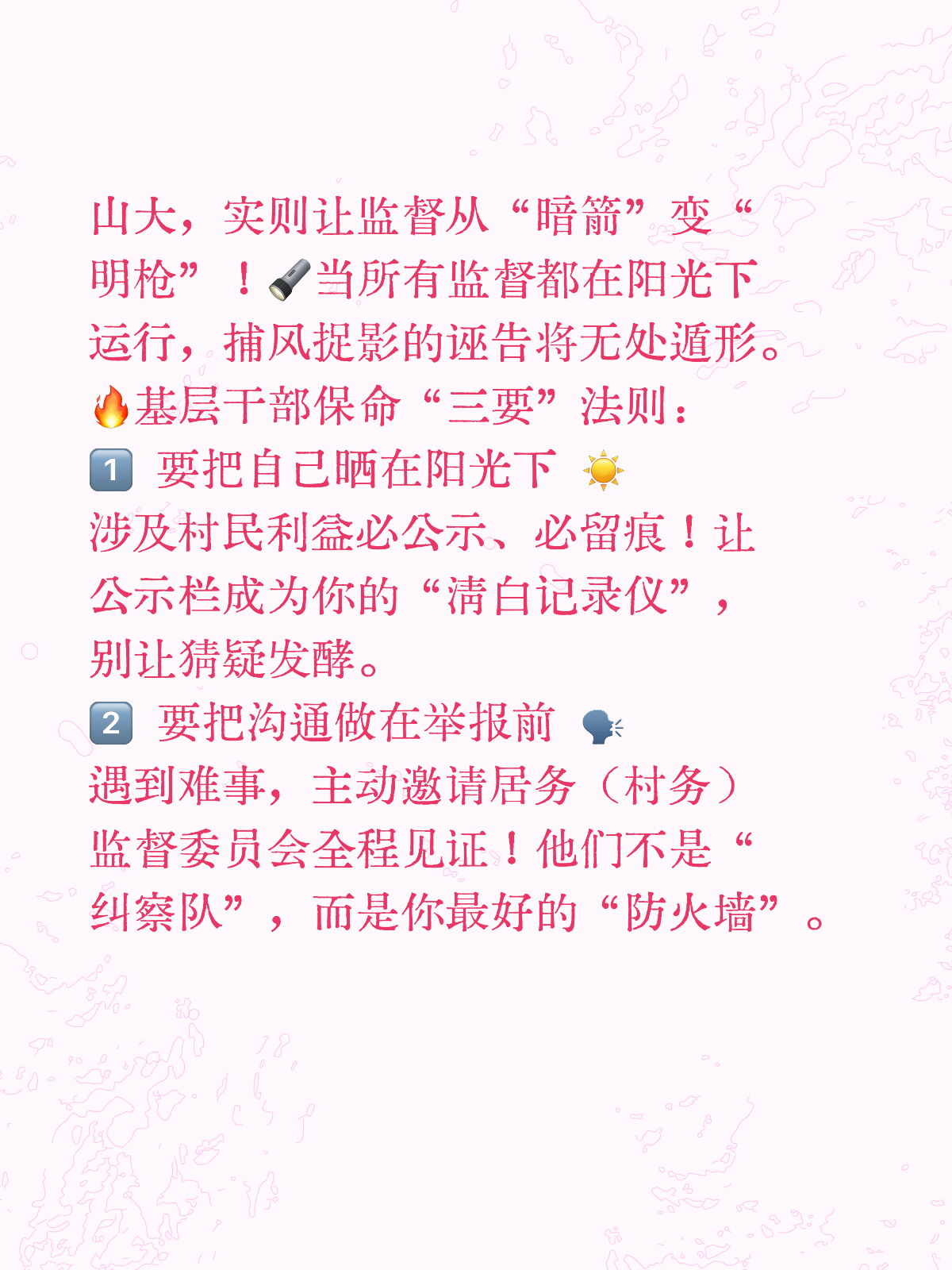 新《监察法实施条例》第21条引发基层关注,杭州留置律师钱小琴深度解读如何将群众监督转化为干部护身符。文章剖析“基层监督整合”核心逻辑,提出“阳光公示、事前沟通、证据留痕”三大实战策略,帮助基层干部消除顾虑,规范履职,在法治阳光下坦荡前行。精炼要点供快速阅读,完整版干货已发布在我账号的同系列视频中,点击头像进入主页查看,欢迎大家在评论区留言讨论。#留置律师#钱小琴律师#杭州律师#刑事辩护#职务犯罪#没有解决不了的问题#多学法律少吃亏#留置陪跑#法律咨询#省城律师#纪检监察#风险防范